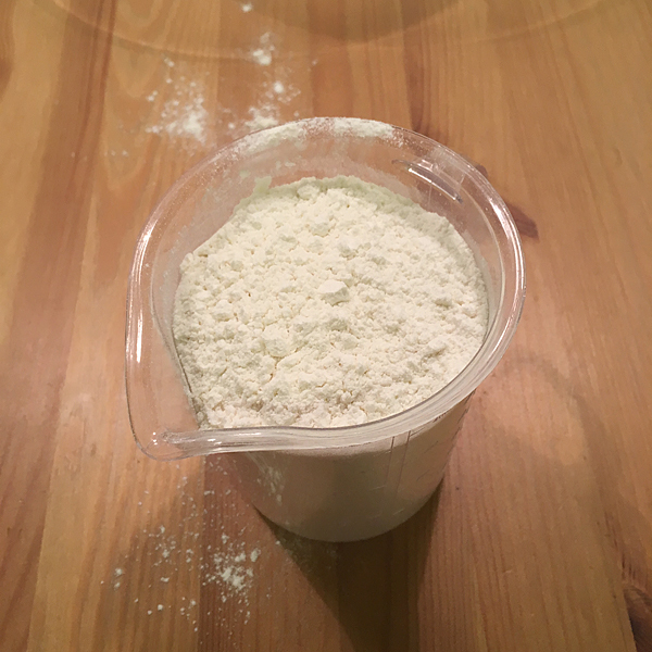Начнем с муки. Беру 2 таких емкости, каждую наполняю до отметки 300, где деления для муки. В случае с моей почти полную. Муку обязательно нужно просеять.