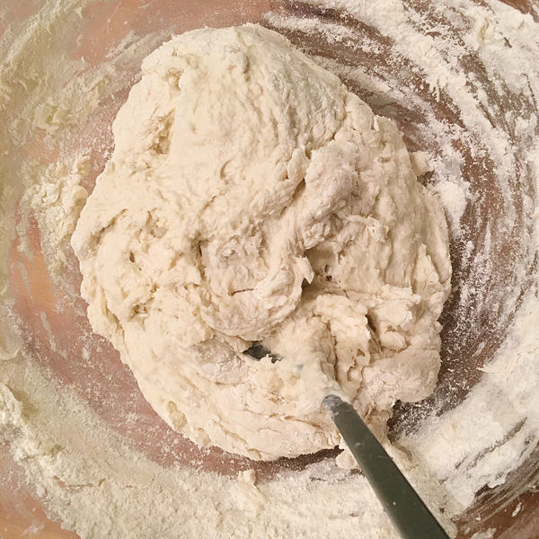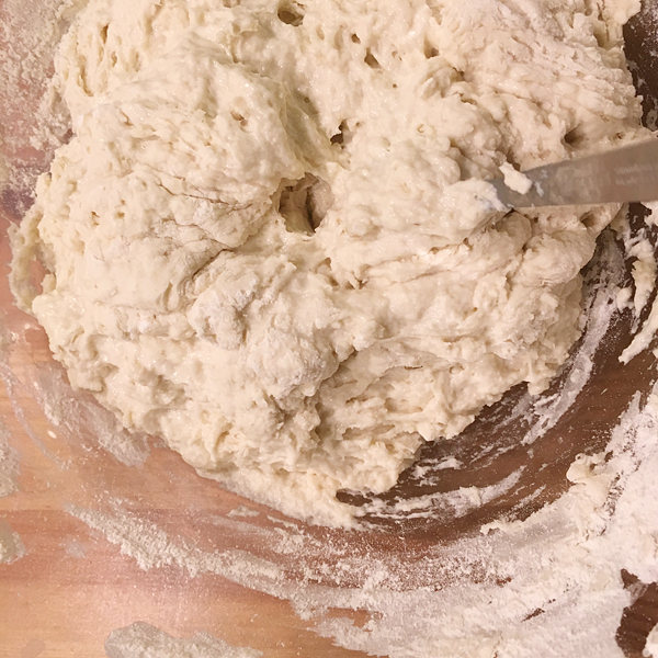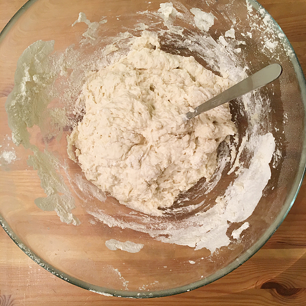 Да, я знаю, что есть всевозможные тестомешалки и прочие девайсы. Но я-то обещал рассказать, как сам делаю. Пробовал перемешивать миксером с крюками для теста — не понравилось, вернулся к кустарному методу.